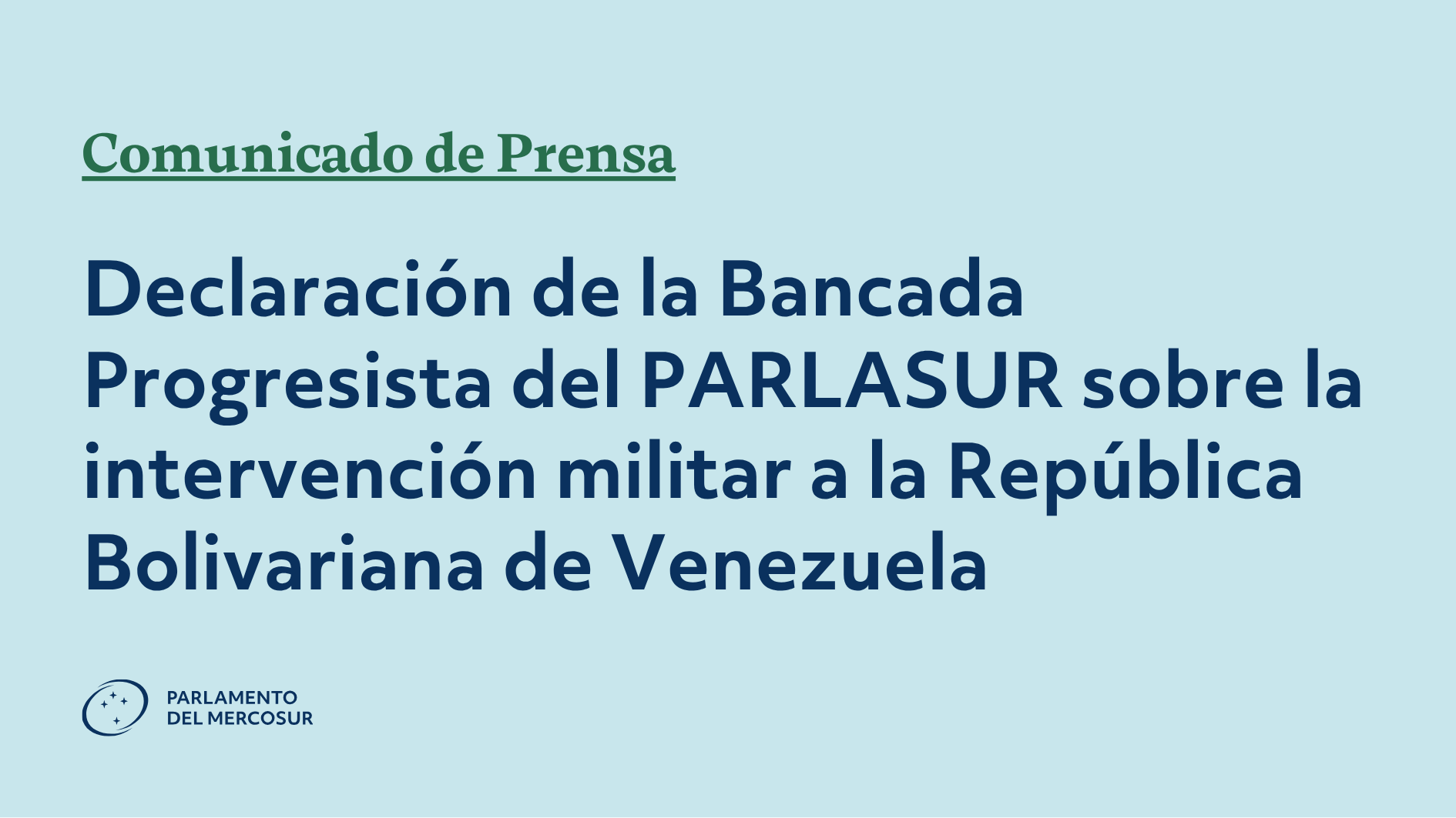 Comunicado de Prensa (04/01/2026). La Bancada Progresista del Parlamento del MERCOSUR expresa su más enérgico repudio a la intervención militar llevada a cabo por los Estados Unidos de América contra la República Bolivariana de Venezuela.