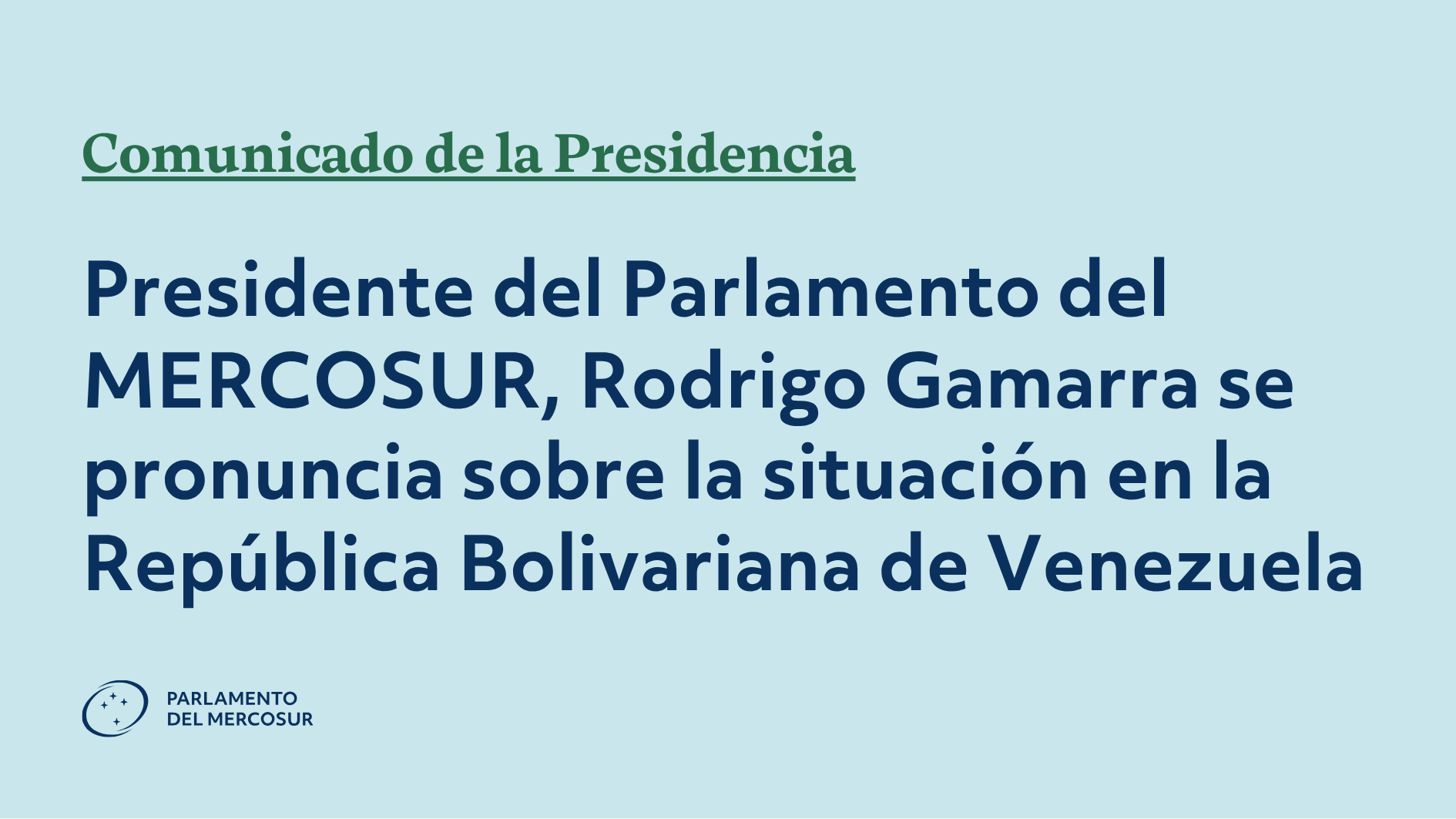 Comunicado de la Presidencia (03/01/2026). El Presidente del Parlamento del MERCOSUR, Rodrigo Gamarra, se pronuncia sobre la situación en la República Bolivariana de Venezuela.