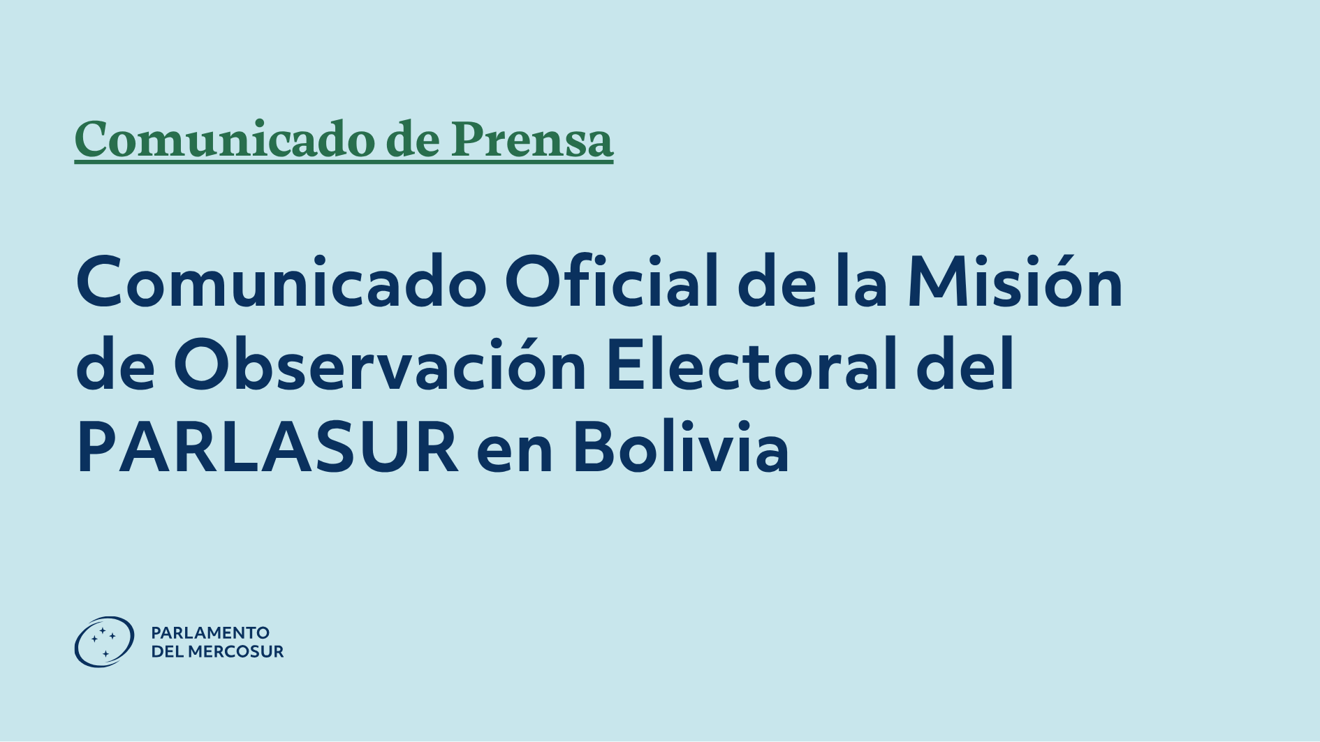 Comunicado de Prensa (19/10/2025). Comunicado de Prensa de la Misión de Observación Electoral del Parlamento del MERCOSUR (MOE-PARLASUR) en el Estado Plurinacional de Bolivia.