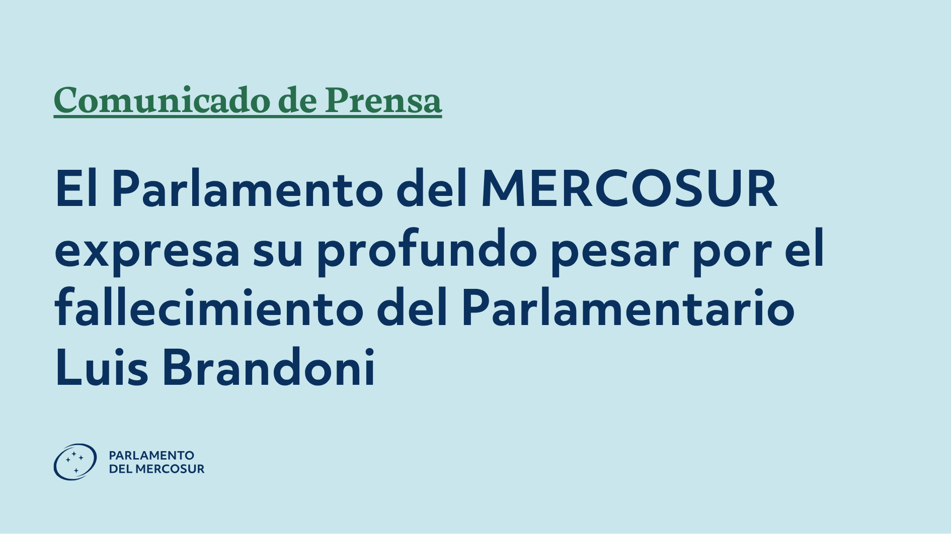 Comunicado de Prensa (20/04/2026). El Parlamento del MERCOSUR (PARLASUR) manifiesta su profunda tristeza por el fallecimiento del estimado Luis Brandoni, ocurrido el 20 de abril de 2026 en la ciudad de Buenos Aires.