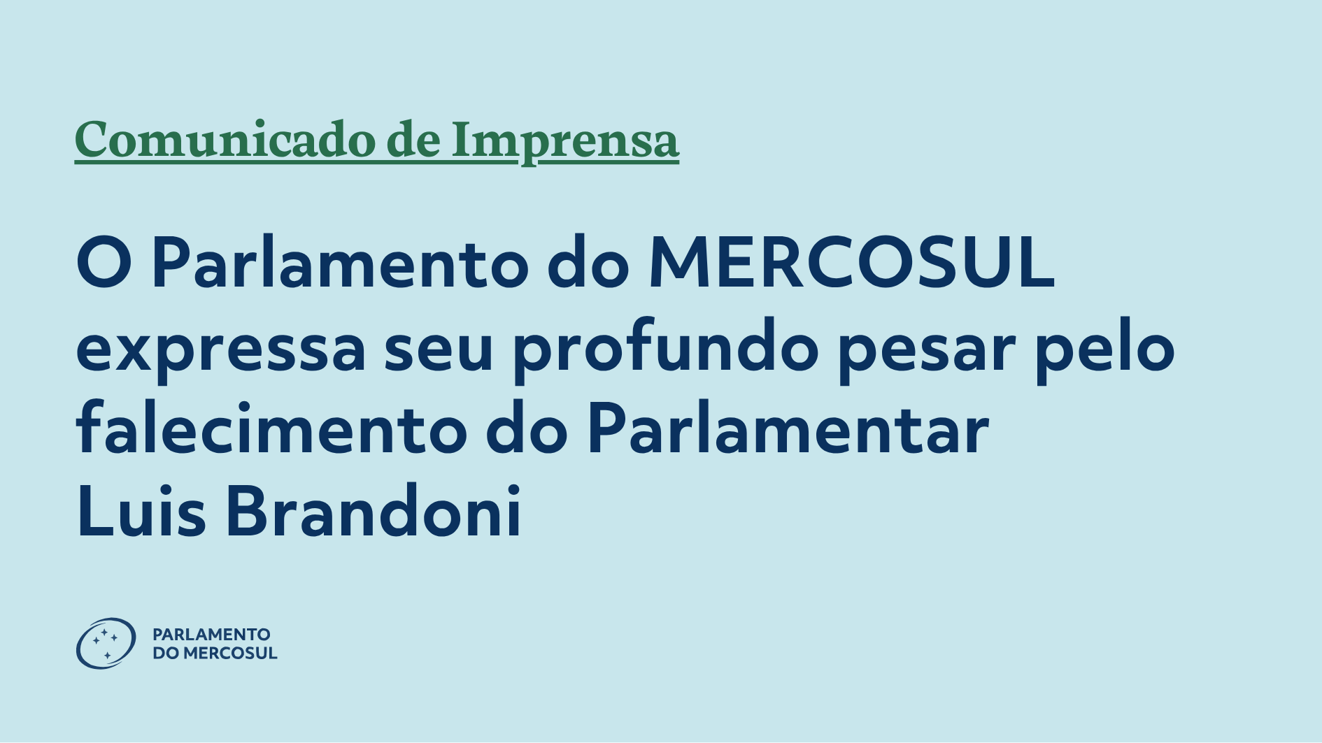 Comunicado de Imprensa (20/04/2026). O Parlamento do MERCOSUL (PARLASUL) manifesta sua profunda tristeza pelo falecimento do estimado Luis Brandoni, ocorrido no dia 20 de abril de 2026 na cidade de Buenos Aires.