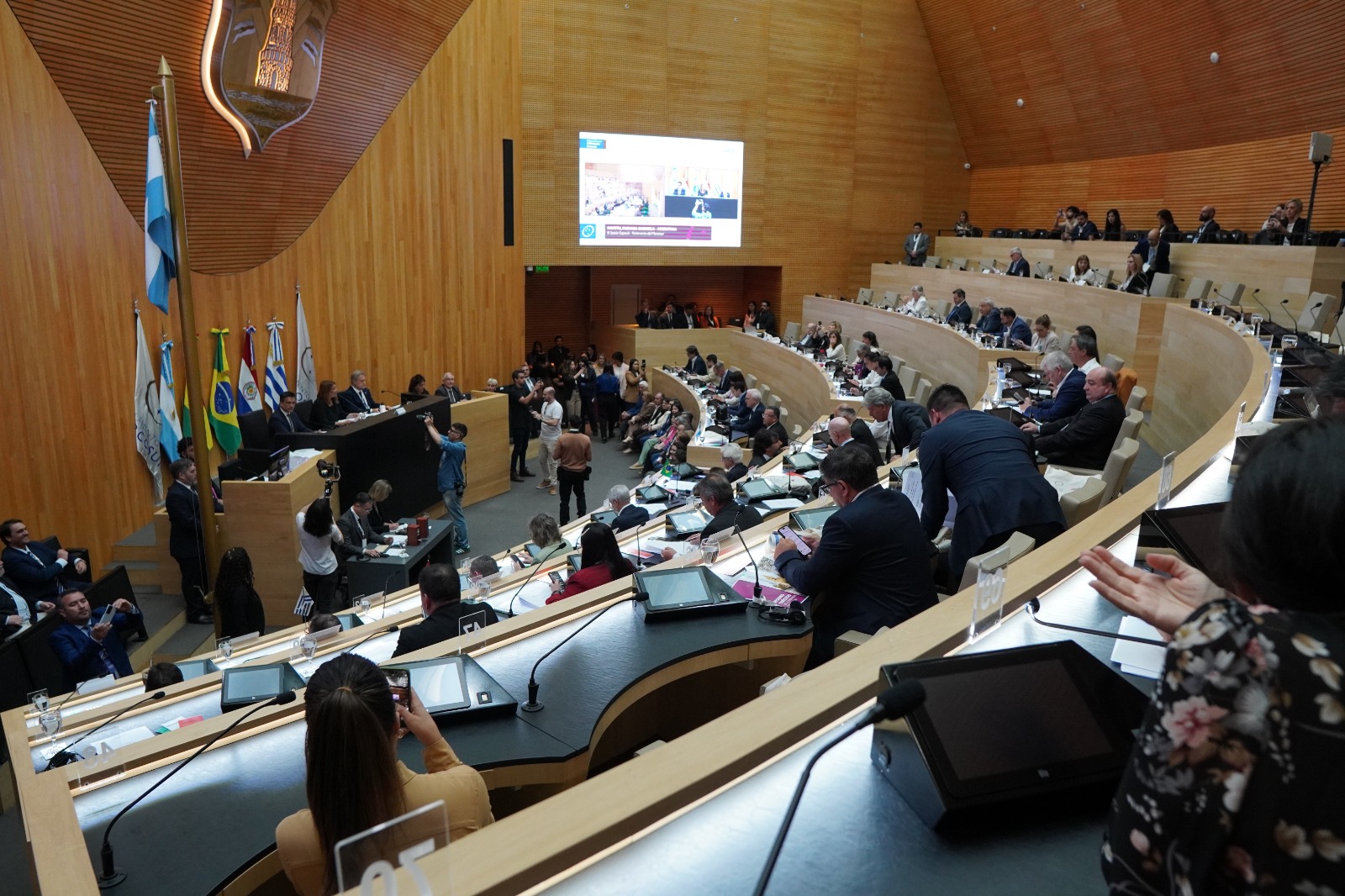 Agência PARLASUR (15/12/2025). A 105ª Sessão Ordinária do Parlamento do MERCOSUL foi realizada nesta segunda-feira, em Montevidéu, dando sequência à agenda institucional do PARLASUL após a Sessão Extraordinária comemorativa pelos 20 anos do Protocolo Constitutivo. O encontro reuniu as delegações dos Estados Partes para a apreciação de matérias legislativas e definições políticas relevantes para o andamento do processo de integração regional.
